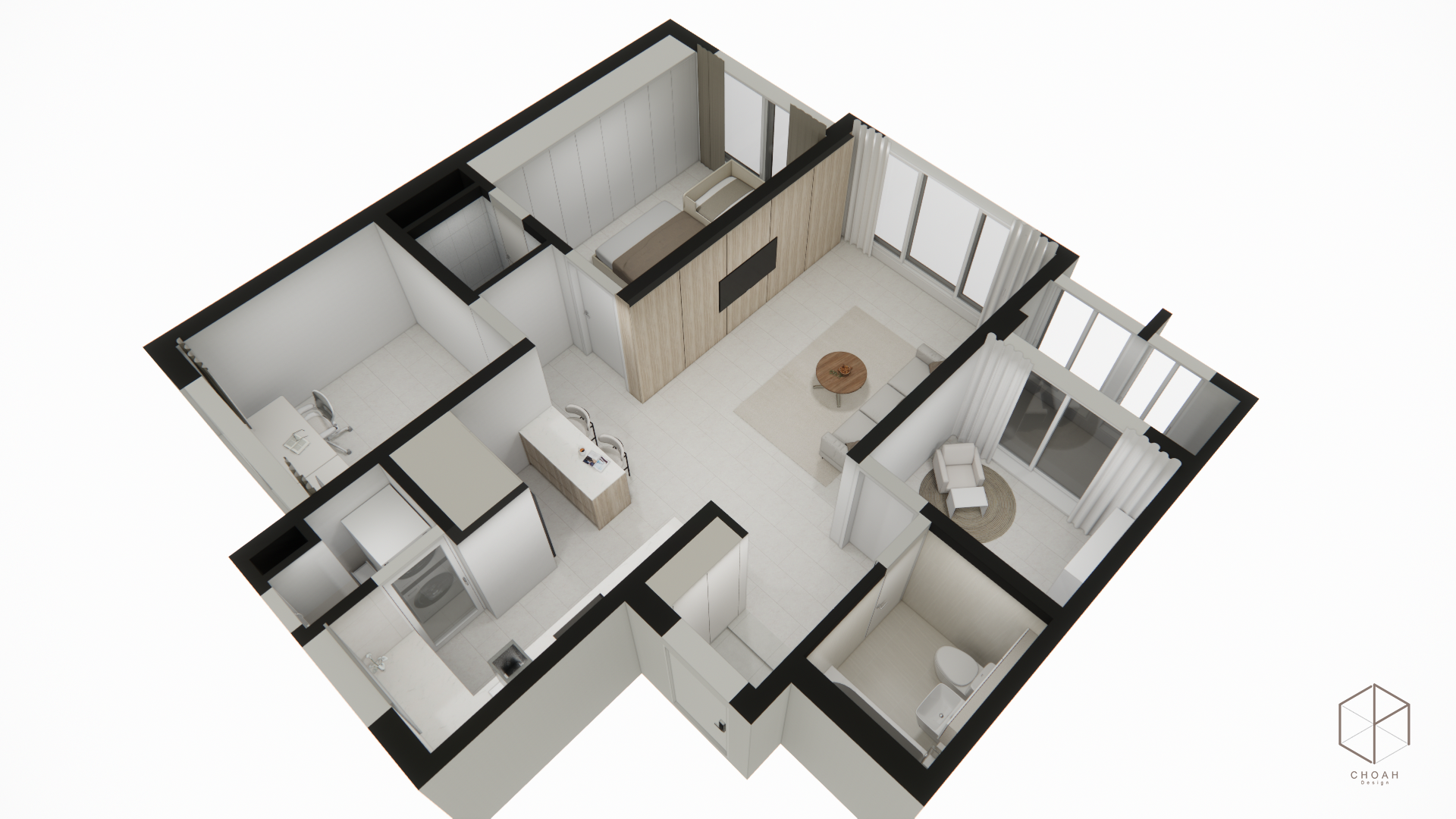 그 앞으로 아일랜드를 배치하여 동선에 걸리지 않게 공간확보 하였습니다.