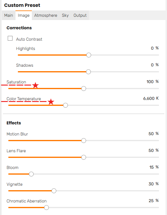 [Image] - [Corrections] - [Saturation], [Color Temerature]